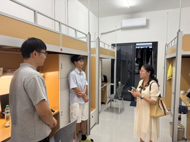 会后,辅导员李金花、班主任张晓伟走访了学生宿舍,代表学院向同学们送上了真挚的节日祝福,详细了解同学的假期规划,针对留校同学重点强调宿舍安全。