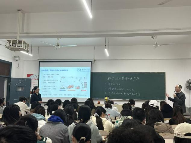 10月30日上午,马克思主义学院教师周红艳与测绘与空间信息工程学院教师蔡小波在枫林校区图书馆402教室就“科学技术是第一生产力”主题开展“双师同堂”思政课教学活动。