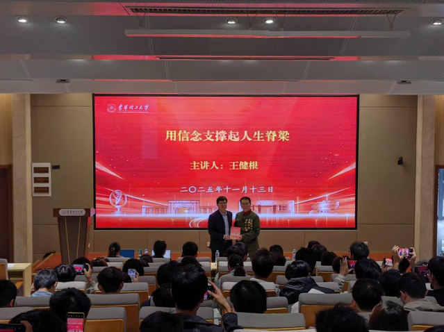 本次教学活动以“用信念支撑起人生脊梁”为主题,两位主讲人从不同维度展开教学。王健根结合自身卫国戍边的亲身经历,围绕“信念是超越自我的思想根基”“信念是战胜艰难险阻的真理武器”“信念是战无不胜的坚持力量”三个层面,通过鲜活生动的事例,深刻诠释了信念蕴含的磅礴伟力。华启和则侧重理论深度解读,将英雄事迹与课程中的爱国主义、理想信念等核心知识点有机融合,引导学生从理论与实践双重维度,透彻理解“信念支撑人生”的深刻内涵。在教学实施过程中,陈晶晶、李罕两位教师负责课堂组织与课后交流环节,有效保障了教学流程的顺畅运行,并在互动中及时回应学生疑问,形成了“主讲+协讲”一体化的教学形式。