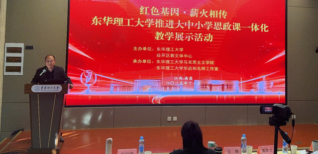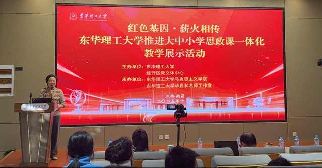 2025年11月21日,东华理工大学成功举办“红色基因·薪火相传”大中小学思政课一体化教学展示活动。第四届江西省政府教育督导评估专家、江西高校思政课教学指导委员会委员、新余学院马克思主义学院原党总支书记、院长潘欧文,东华理工大学马克思主义学院副院长周成莉出席。东华理工大学马克思主义学院党委副书记欧阳霞主持。