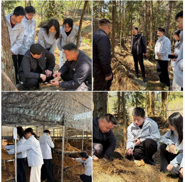 宣讲团成员走进种植与科研一线,深入东华理工大学黎川产业技术研究院、江西黎川赤松茸科技小院及江西辰厚生态科技实验基地,实地观摩菌菇林下种植的生态环境,系统学习其培育流程与管护环节,并重点考察来自科技小院的“赣青菌功队”为企业赋能的生态种植新技术与新模式,切身感受科技赋能生态农业、绿色产业助推乡村发展的生动实践。调研期间,聚焦林下经济发展路径、校地产学研协同、生态产业赋能乡村振兴等话题,宣讲团成员与各企业、基地负责人进行了深入交流、充分探讨。企业负责人结合产业发展实际,分享了技术落地与模式创新的宝贵经验。