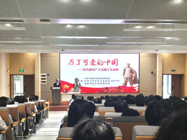 4月9日,东华理工大学马克思主义学院《中国近现代史纲要》课程组邀请诸葛方林到校为学院师生作题为《为了可爱的中国——伟大的共产主义战士方志敏》的专题授课,南昌市森林公园学校师生代表200余人也到场聆听,副院长周成莉主持活动。在互动环节,诸葛方林带领现场师生齐唱赣东北民谣《湖塘塌塌岭》。
